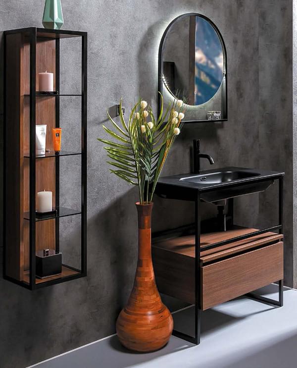 Главной эксклюзивной особенностью коллекции Loft является каркас консоли. Основная часть представленных на рынке консолей в стиле лофт, имеют каркас из черного металла, который подвержен коррозии, а также требует сварки, которая зачастую не бывает идеальной. Armadi Art в коллекции Loft используют консоль из анодированного алюминия. Алюминий имеет пожизненную гарантию на стойкость к коррозии и не имеет никаких изъянов в стыках и соединениях. Другой отличительной особенностью является использование ультратонкой керамической раковины-моноблок Vallessi в матовом черном и перламутровом белом исполнениях. Ящики изготовлены из влагостойкого материала GPW (green particular wood), с ламинацией от немецкого производителя Technocell. В коллекции использована фурнитура от лидера рынка Hettich. Дно ящиков отделано эко-кожей с фирменным стежком.