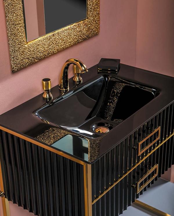 Коллекция Vallessi Avantgarde состоит из трех моделей Piazza, Linea и Canale. Цвета тумб глянцевый черный и глянцевый белый, фурнитура выполнена в цвете хром и золото. Заказчик может выбрать ультратонкую керамическую раковину-моноблок (глянцевую/ перламутровую белую или глянцевую/матовую черную) или прямую столешницу, изготовленную из передового материала High-performance gelcoat. Эти столешницы обладают интересной фактурой и при этом очень износостойки и удобны в уходе. На прямые столешницы могут быть установлены дизайнерские керамические раковины-чаши с тонкими бортами. Размерный ряд тумб 80 см, 100 см, 120 см. Рифленые фасады тумб выполнены из МДФ с ультраглянцевым акриловым покрытием High-Pressure Membrane Coating от известного производителя LG. В коллекции использована фурнитура от лидера рынка Hettich.